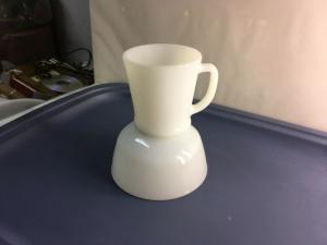 2 WHITE FIRE KING D HANDLE MUG AND 5" CHILI bowl     Completed    $7.99