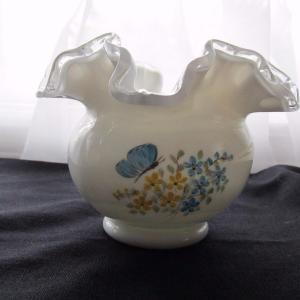 Fenton Milk Glass Covered Dish Signed D. Cutshan     Completed    $7.95