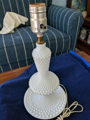 Vintage 12" Hobnail Milk Glass Lamp-VGC     Completed    $7.95