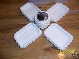 Hob nail milk glass ash trays and table lighter     Completed    $7.49