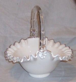 FENTON SILVER CREST BASKET. MILK GLASS     Completed    $7.49