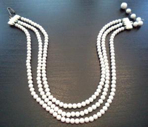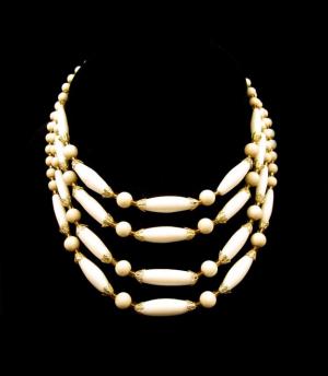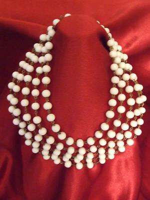 VINTAGE Milk Glass Five Strand Necklace     Completed    $7.49