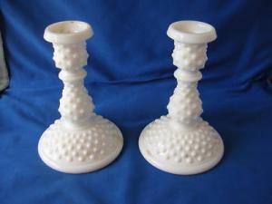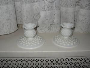 VINTAGE FENTON MILK GLASS HOBNAIL CANDLE HOLDERS     Completed    $7.49