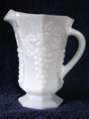 DECORATIVE MILK GLASS PITCHER GRAPES AND LEAVES     Completed    $7.49