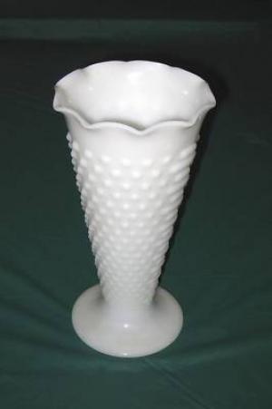 Vase 9 1/2 " Hob Nail Pattern Milk Glass     Completed    $7.49