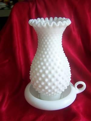 Fenton Milk Glass "Hobnail" Hurricane Candle Lamp     Completed    $7.49