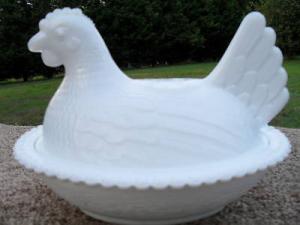 VINTAGE WESTMORELAND MILK GLASS CHICKEN HEN DISH     Completed    $7.49