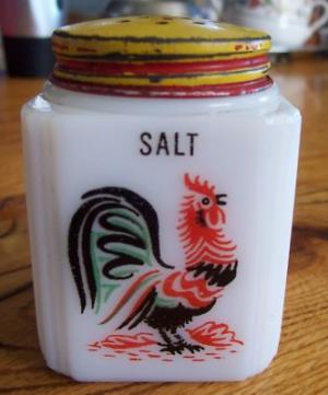 Milk Glass Tip City 3 inch Salt Shaker w/ Rooster     Completed    $7.49