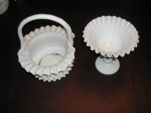 Fenton Hobnail Milk Glass Nut Dish & Posey Basket     Completed    $7.49