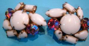 Vintage Aurora Borealis Milk Glass Clip Earrings     Completed    $7.49