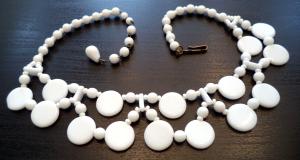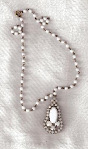 PRETTY VINTAGE WHITE MILK GLASS NECKLACE     Completed    $7.49
