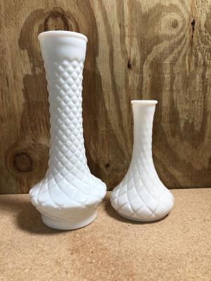 White milk glass swung vase 10 3/4”     Completed    $7.5