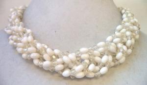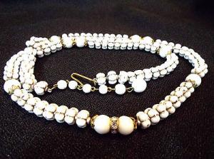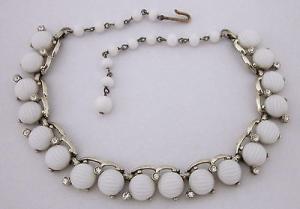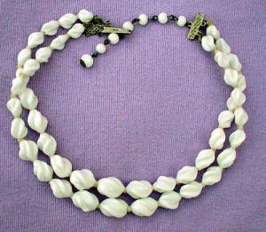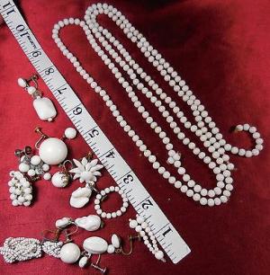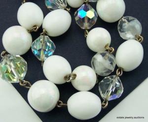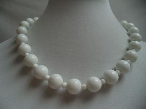 Vintage 50s 60s WHITE MILK GLASS BEAD NECKLACE     Completed    $7.26