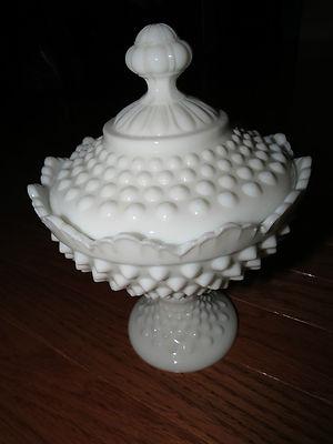 HOBNAIL-MILK GLASS Footed Candy Box and Lid     Completed    $7.35
