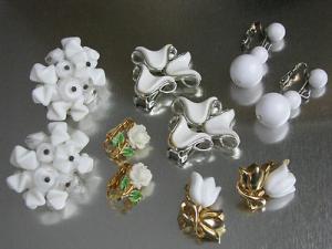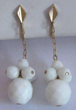 Vintage Dangling Faceted Milk Glass Bead Earrings     Completed    $7.12