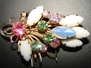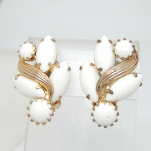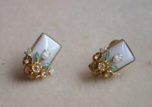 Art Deco Milk Glass Rhinestone Earrings     Completed    $7.13