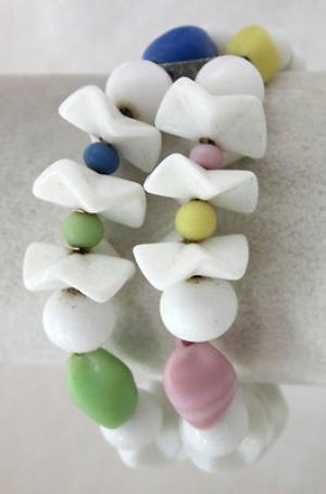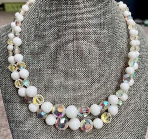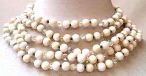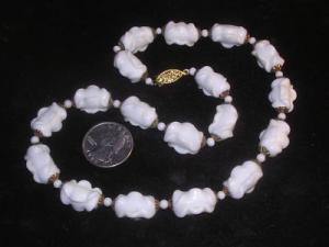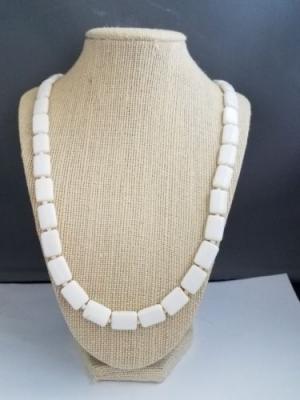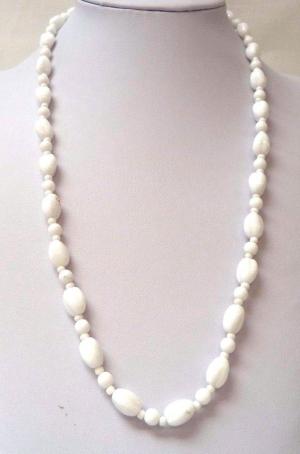 vintage 24 inch white milk glass necklace     Completed    $7.16