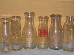 LOT OF 6 OLD GLASS MILK BOTTLES     Completed    $7.16