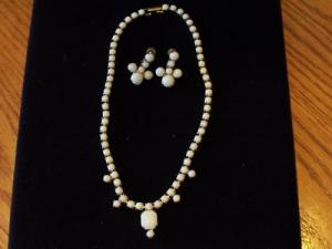 VINTAGE CORO MILK GLASS NECKLACE AND EARRING SET     Completed    $6.99