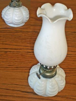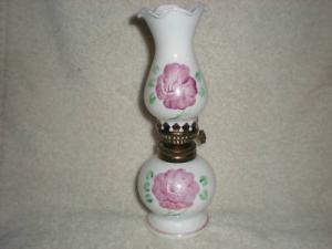 Minature Oil Lamp Milk Glass W/ Rose's Hong Kong     Completed    $6.99