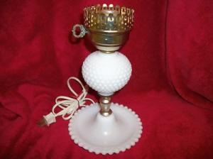 WHITE MILK GLASS HOBNAIL LAMP,TURN KEY SWITCH     Completed    $6.99