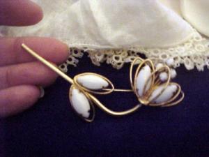 VINTAGE MILK GLASS DAISY FLOWER PIN BROOCH AS IS     Completed    $6.99