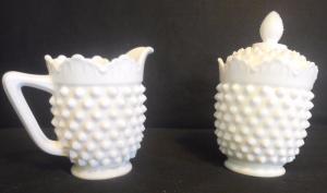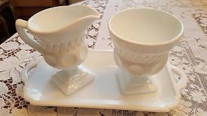 Milk glass sugar bowl/creamer and tray set     Completed    $6.99