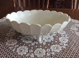 WHITE MILK GLASS FRUIT BOWL-FOOTED-LARGE SIZE     Completed    $6.99