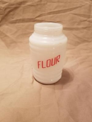 Vintage Milk Glass Flour Shaker Red Lettering     Completed    $6.99