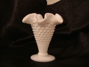BEAUTIFUL FENTON HOBNIAL MILK GLASS RUFFLED VASE     Completed    $6.5