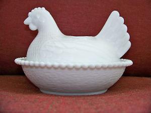 MILK GLASS CHICKEN CANDY DISH WHITE     Completed    $6.5