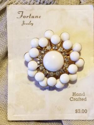 Vintage Milk Glass Rhinestone Leaf Brooch     Completed    $6.5