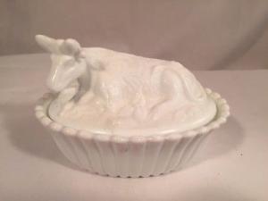 Milk Glass 2 Pc Cow on Ribbed Base Covered Dish     Completed    $6.5