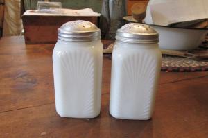 Vintage White Milk Glass Spice Jars Tin Lids     Completed    $6.5