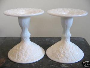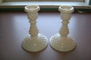 Pair of Fenton Milk Glass Hobnail Candle Sticks     Completed    $6.03