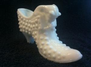 Blue Milk Glass Fenton Daisy Button Ladies Shoe     Completed    $6.03