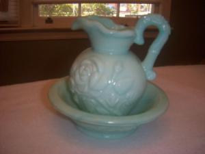 Jade Green,Fenton Glass,Milk Glass,Pitcher & Bowl     Completed    $6.01
