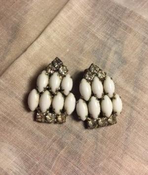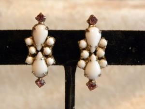 VINTAGE MILKGLASS & PINK RHINESTONE EARRINGS     Completed    $6.05