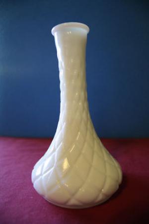 VINTAGE DIAMOND QUILTED VASE MILK GLASS 6" TALL     Completed    $5.99