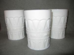 3 White Milk Glass Juice Glasses Dot Pattern     Completed    $5.99