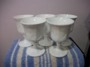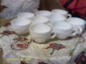 9 white milk glass punch bowl cups.grape design.     Completed    $5.99