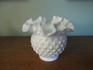 Fenton Hobnail Milk Glass Vase with Ruffled Edge     Completed    $5.99