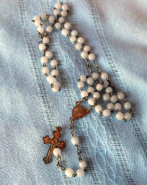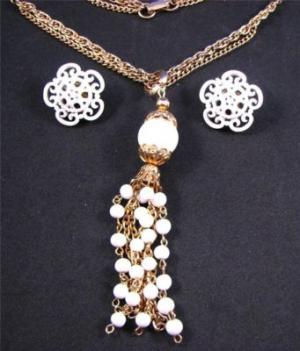 VTG SIGNED MILK GLASS WHITE BEAD FRINGE CHOKER!     Completed    $5.99