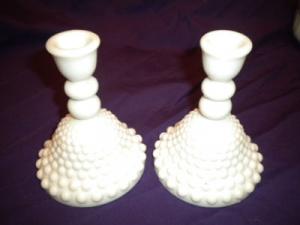 VINTAGE MILK GLASS HOBNAIL CANDLE HOLDERS 4 3/4"     Completed    $5.99