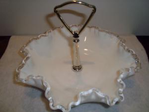 Vintage Fenton Silver Crest Milk Glass Candy Dish     Completed    $5.99