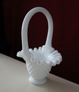 FENTON MILK GLASS HOBNAIL BASKET CANDY DISH a     Completed    $5.97
