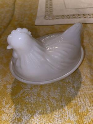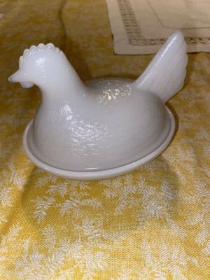 milk glass hen on the nest.2 of them.     Completed    $5.98