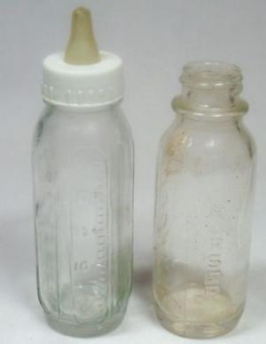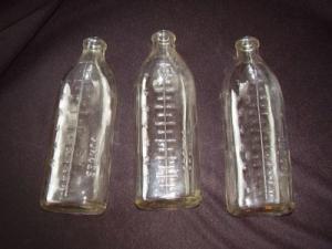 THREE ( 3 ) ANTIQUE GLASS BABY MILK BOTTLES     Completed    $5.95