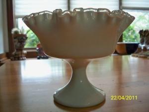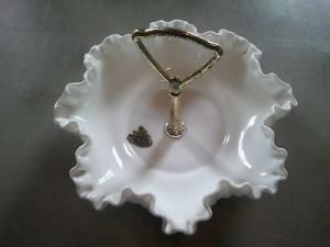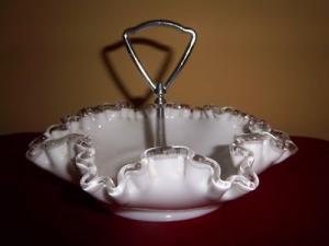 FENTON SILVER CREST MILK GLASS BONBON DISH     Completed    $5.95