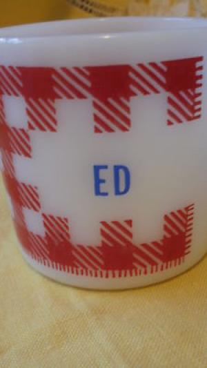 Glasbake milk glass Husband mug, 1977-78     Completed    $5.95